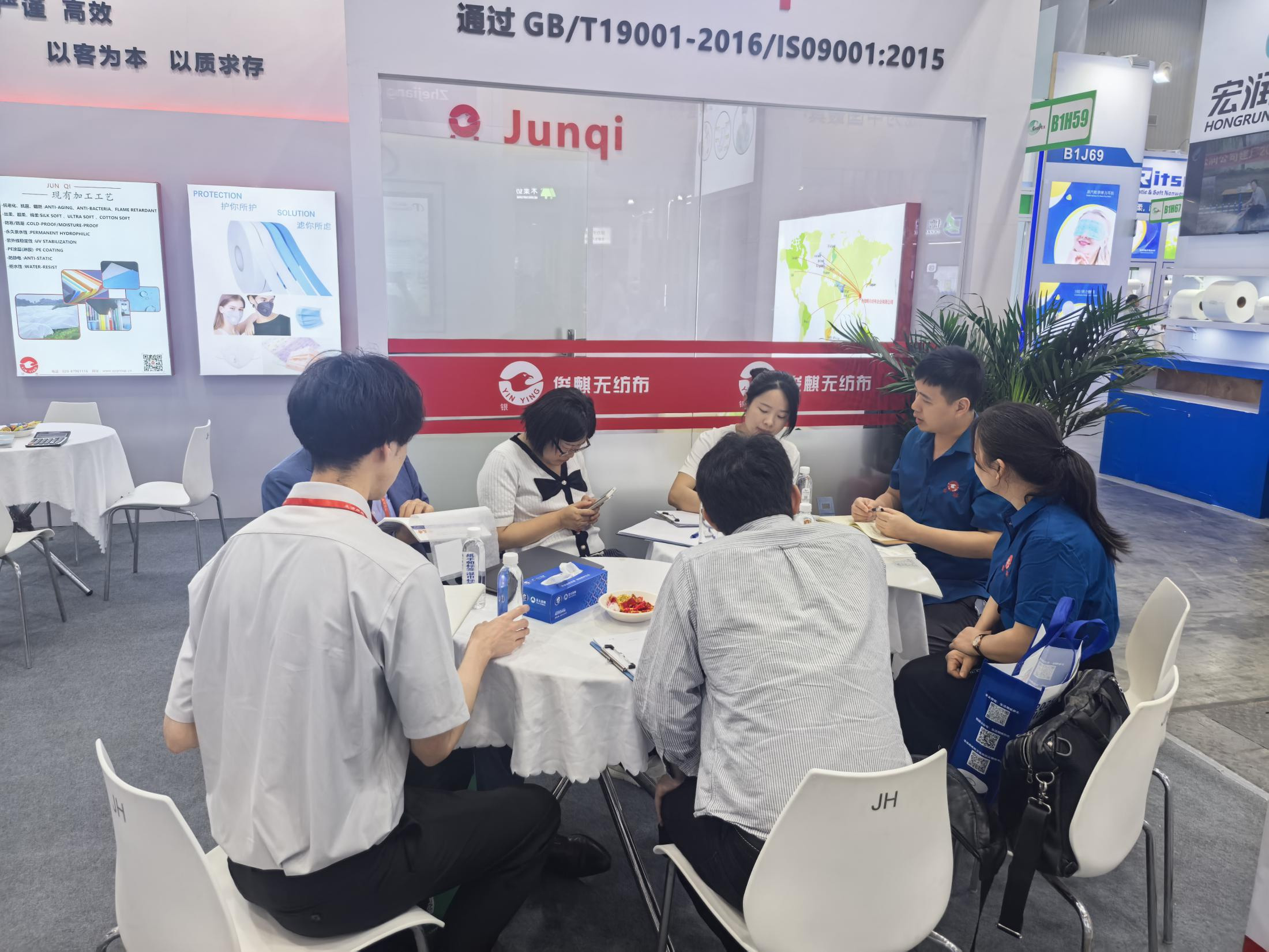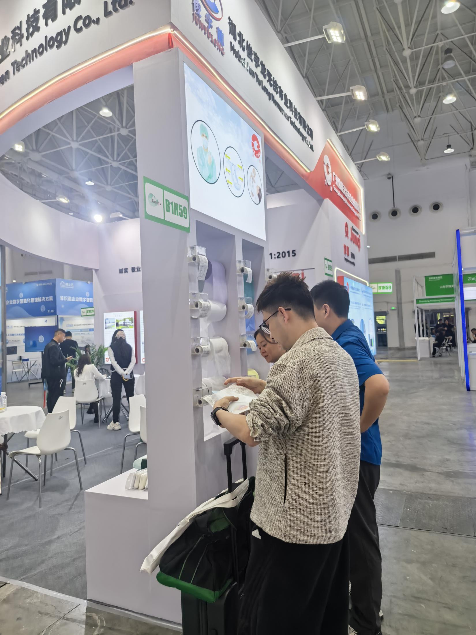 此次展会规模空前,展览面积达10万平方米,12个展馆全部启用。武汉国际博览中心可提供室内展览面积15 万平方米,室外展览面积4万平方米,展览规模位居全国第三,华中第一。参展商与观众:共有1100多家参展企业齐聚一堂。开展首日,便迎来了4万多名专业观众。预计整个展会期间将吸引来自全球约35,000名观众参观。产品展示与技术推广展示内容:展示了公司系列的纺粘无纺布产品,包括用于卫生巾、尿不湿、湿巾等生活用 纸制品的无纺布材料。宣传效果:通过与客户的交流,了解到消费者对生活用纸产品的需求不断增长,推动了整个行业的快速发 展。同时,随着中西部地区经济的快速发展,以及农村市场的逐步开拓,这些地区的市场潜力逐渐显现。